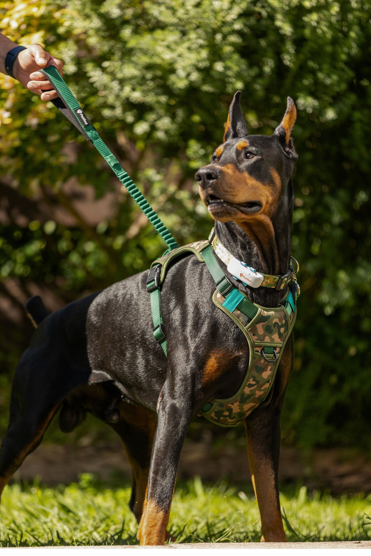 El arnés PetFind con correa magnética integrada está diseñado para brindar control inmediato en situaciones de emergencia.