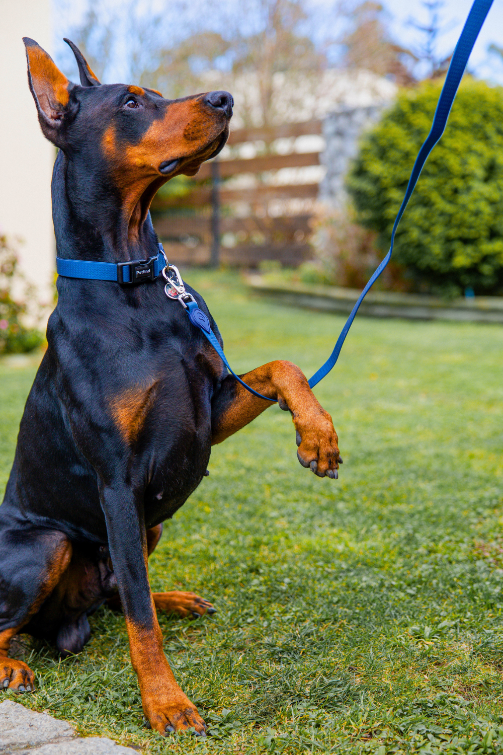 La correa Neopro Azul es nuestra correa para perros para todo clima. La capa exterior de goma Neopro protege el poliéster interior, lo que lo hace extremadamente resistente a la intemperie y muy fácil de limpiar y mantener.